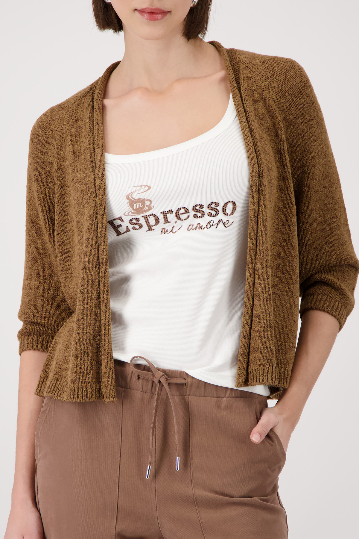 Dieser Stricküberwurf verleiht jedem Outfit eine gemütliche Note. Ohne Verschluss und mit ¾-Raglanärmeln.