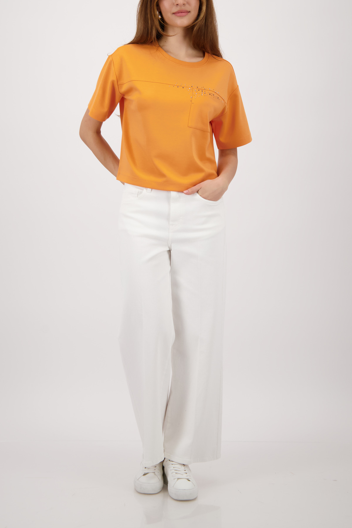Fließendes Viskose-Sweatshirt mit Strasssteinen, Rundhalsausschnitt und Brusttasche – stilvoller Begleiter für selbstbewusste Looks.